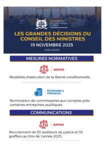 Sous la présidence de Patrice Talon, le Conseil des ministres du 19 novembre 2025 a entériné plusieurs décisions stratégiques institutionnelles, économiques et sociales qui témoignent de la dynamique de réformes engagée par l’exécutif béninois.
