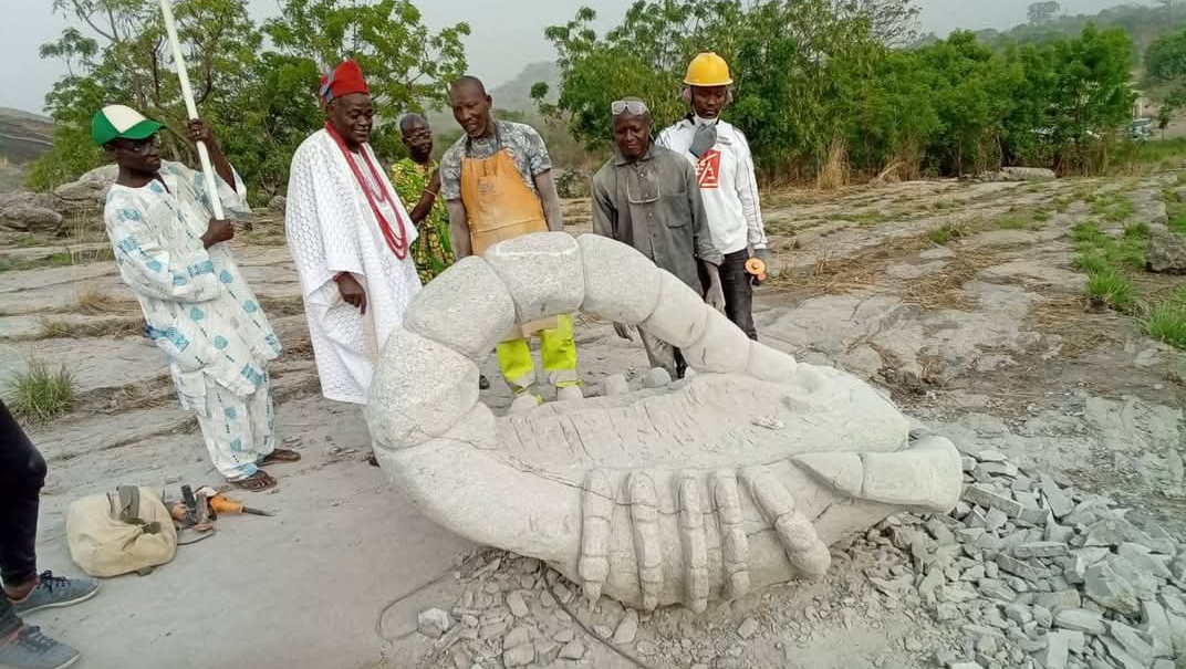 Il sonnait exactement 17h05 lorsque le souverain et sa suite ont foulé le sol de ce lieu sacré, aujourd’hui dédié à la création artistique. Sous la direction de l’artiste béninois Charly Djikou, une équipe de sculpteurs transforme depuis le 20 janvier 2026 des blocs de granite en œuvres symboliques retraçant l’histoire, les croyances et le vécu du peuple Shabè. Sur la vingtaine d’œuvres prévues, douze sont déjà réalisées, témoignant d’une progression significative à mi-parcours de ce projet prévu sur trois mois.